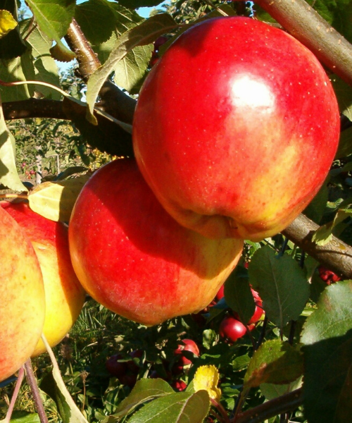 Early winter variety. The fruits are large, reddish with white flesh, and have a very good sweet-tart flavor. The tree is small and productive.