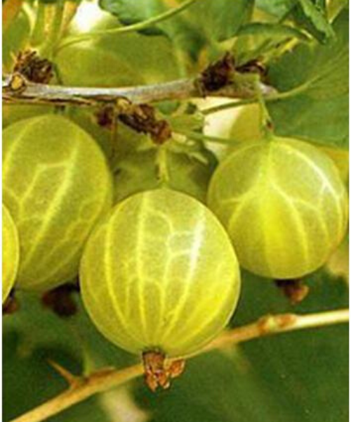 Delicately colored, yellow-green fruits, large in size. The flavor is sweet, like apricots, with a pleasant aroma. High-yielding. Ripens in midJuly. Disease-resistant. The shrub has a circumference of up to 1.5 meters. The berries are suitable for jams, preserves, and wines.