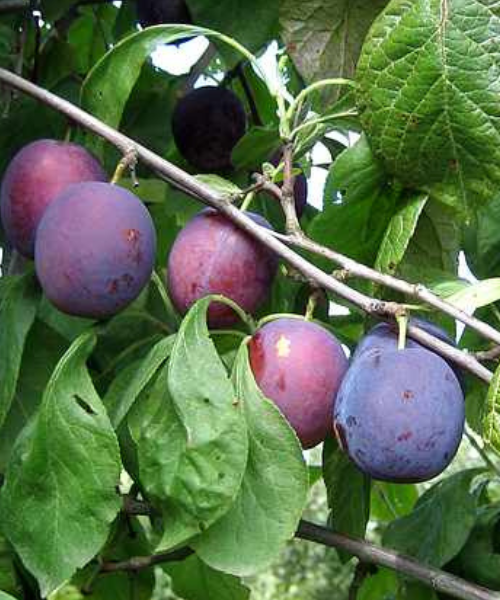 The tree is medium-sized with an upright crown. The fruits are large, oval, and violet. The flesh is yellow, juicy, pleasantly sweet-and-sour, very flavorful, with the stone separating easily. The variety has good winter hardiness and disease resistance. Pollinates with domestic plums that flower at the same time, for example ‘Edinburgas Hercogs‘, ‘Emma Lepermane‘.