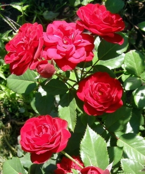 The flowers are orange-red, semi-double, with a light aroma. The height of the bush is up to 0.7 m. It blooms repeatedly.